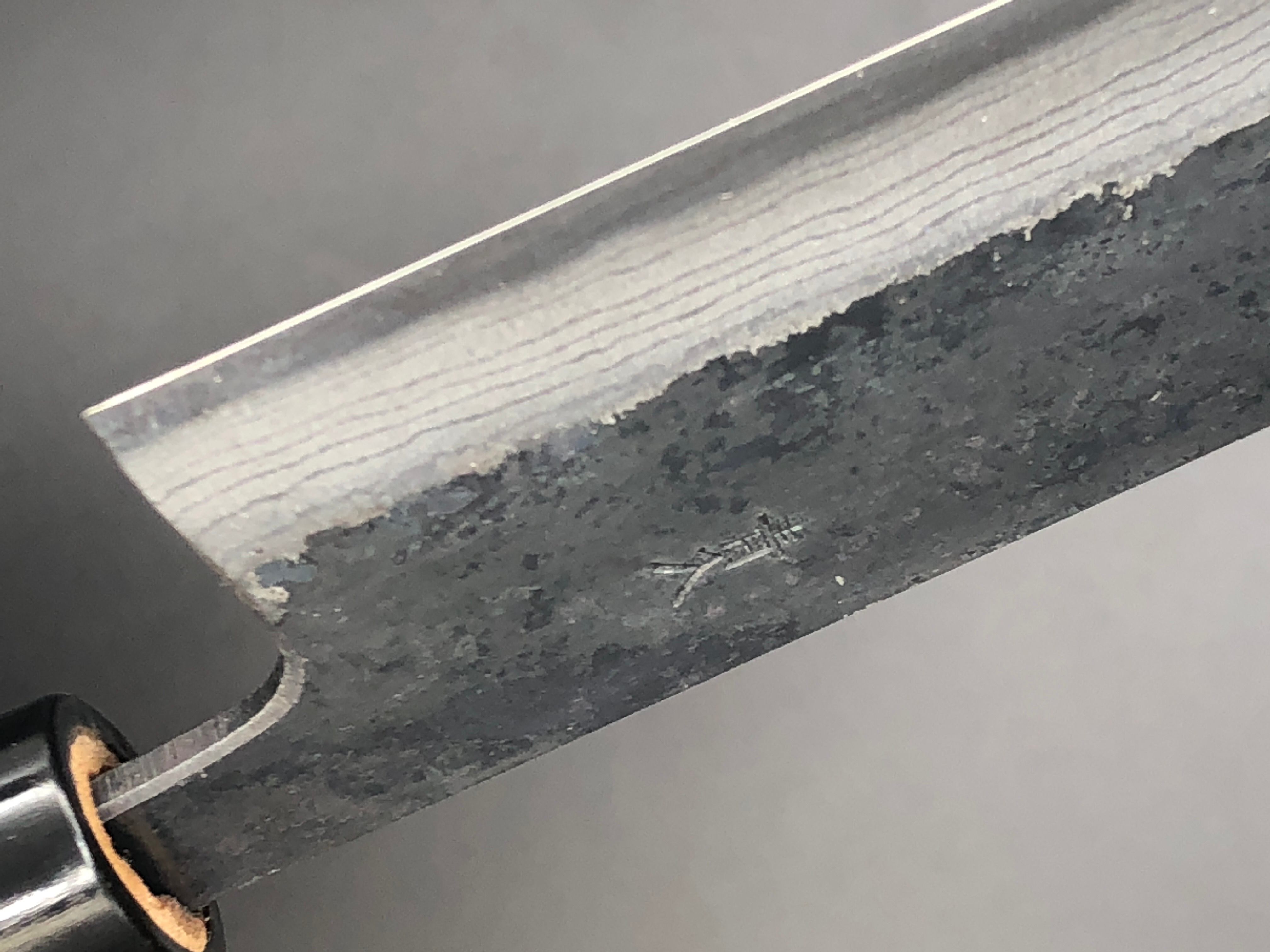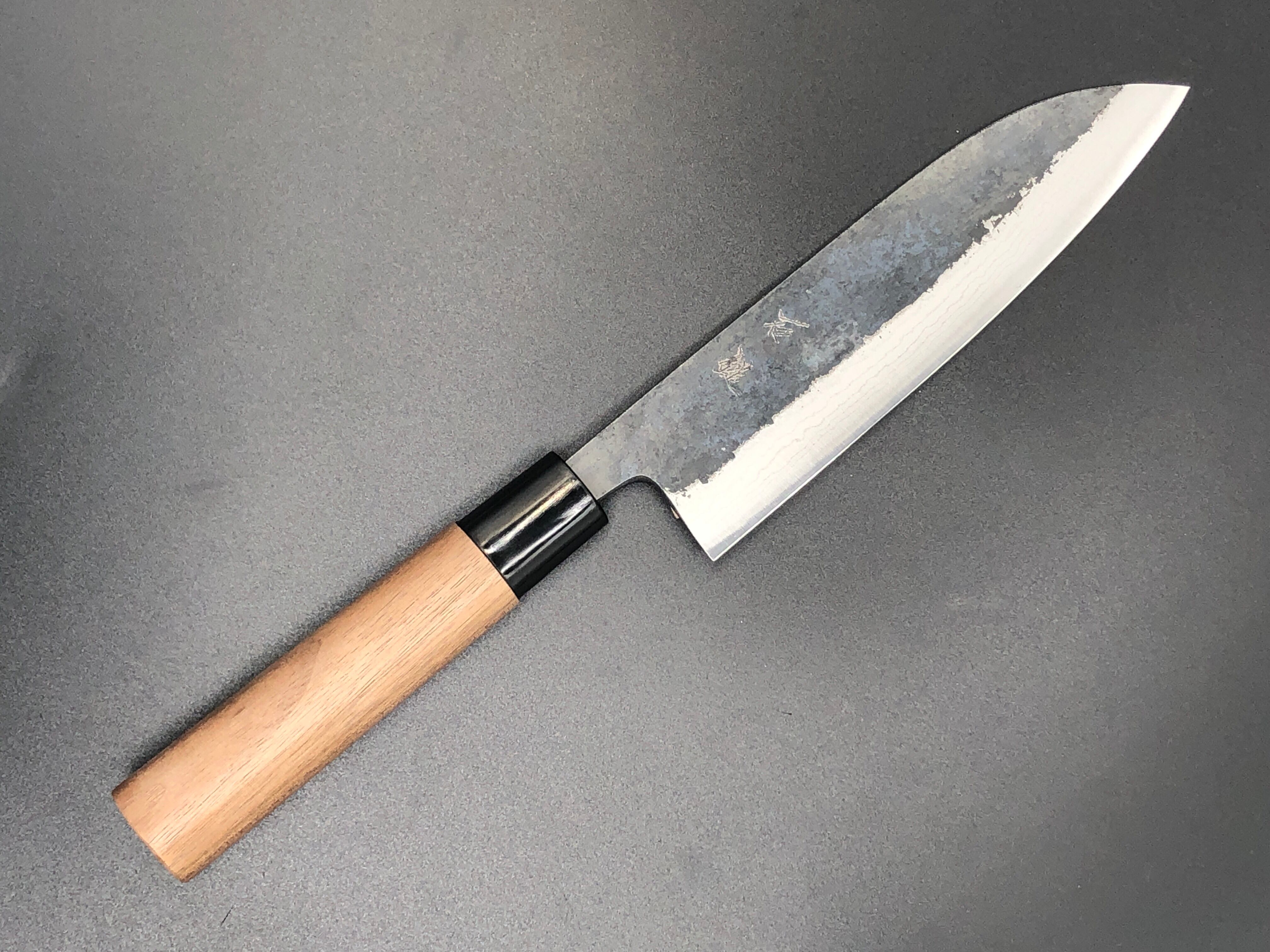 黒打ち三徳包丁/165mm/青鋼2号/積層ダマスカス/柄:胡桃