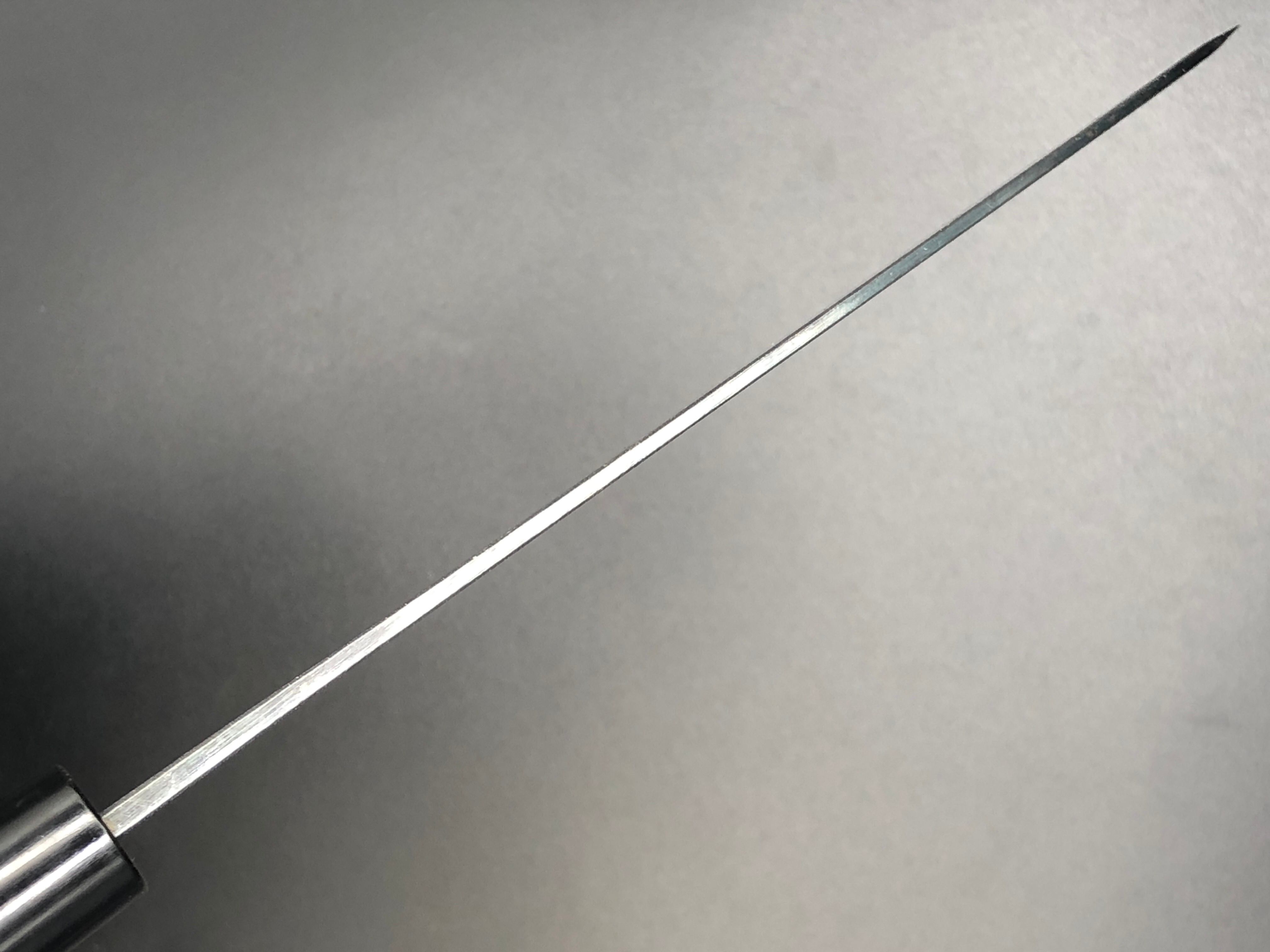 ています。刃幅は牛刀よりも広くなっています。また両刃なので、右利き、左利きを問わずご使用いただけます。
